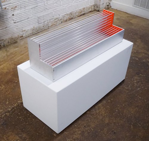 “functor” is an ongoing series imbuing levity via architectural rhythym into heavy, industrial materials. Using consistent rectilnearity across the series, these pieces engage the user by creating three dimensional “circuitry” that the viewer cannot comprehend until viewing the entire piece.